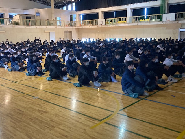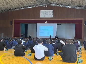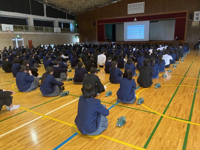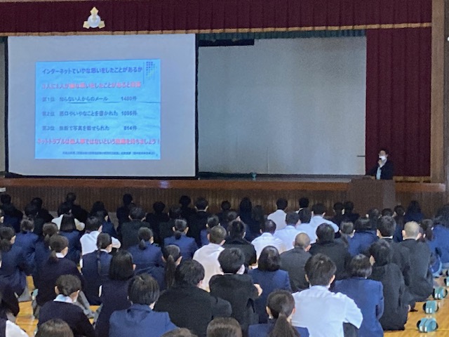 令和5年3月15日(水)に「ネットトラブル等の未然防止のために」をタイトルに、株式会社宮崎県ソフトウェアセンターの中宮清孝様によるSNS関連講演会が行われました。ネットトラブルの被害状況やSNSの誤った使い方の説明など、生徒が当たり前に使用しているスマートフォンやタブレットには危険がたくさん潜んでおり、日常のモラルと同様に情報モラルを守ることがとても重要であると教えていただきました。また、ネットトラブルは他人事ではなく身近な問題であるという認識を持つことが大事であり、今後ネットトラブルに巻き込まれることがないよう、スマートフォンやタブレットの使い方を見直す良い機会になりました。