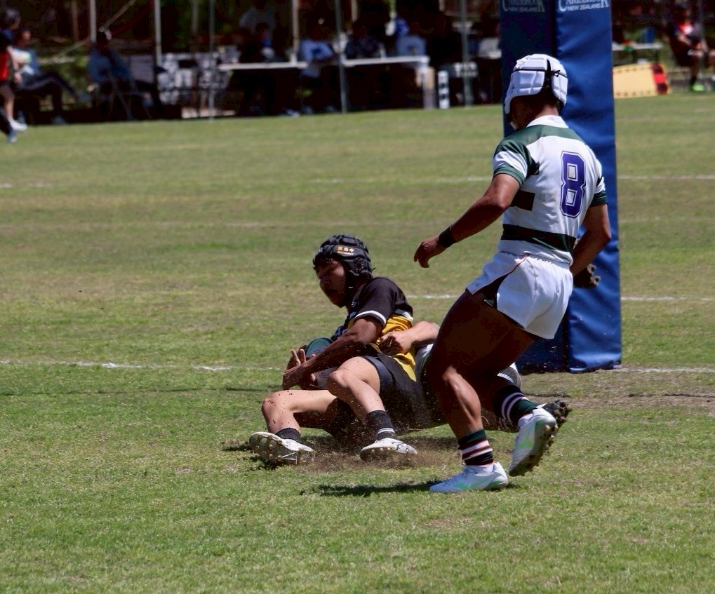 前半は攻め込むも細かなミスでスコアできない時間が進みました。グラウンドの滑りやすさもあり、スリップで思うようなプレーに持って行けませんでした。反則から自陣で守る時間が長くなり、前半ロスタイムに先制され高鍋7–0日向で前半を折り返します。