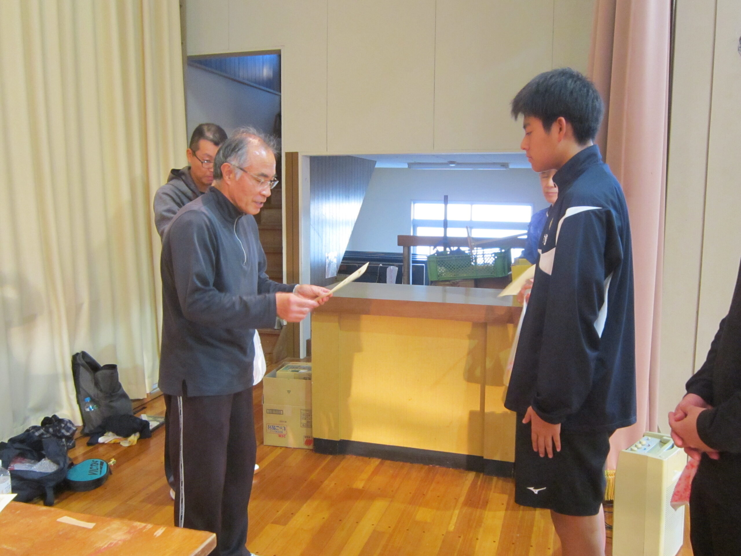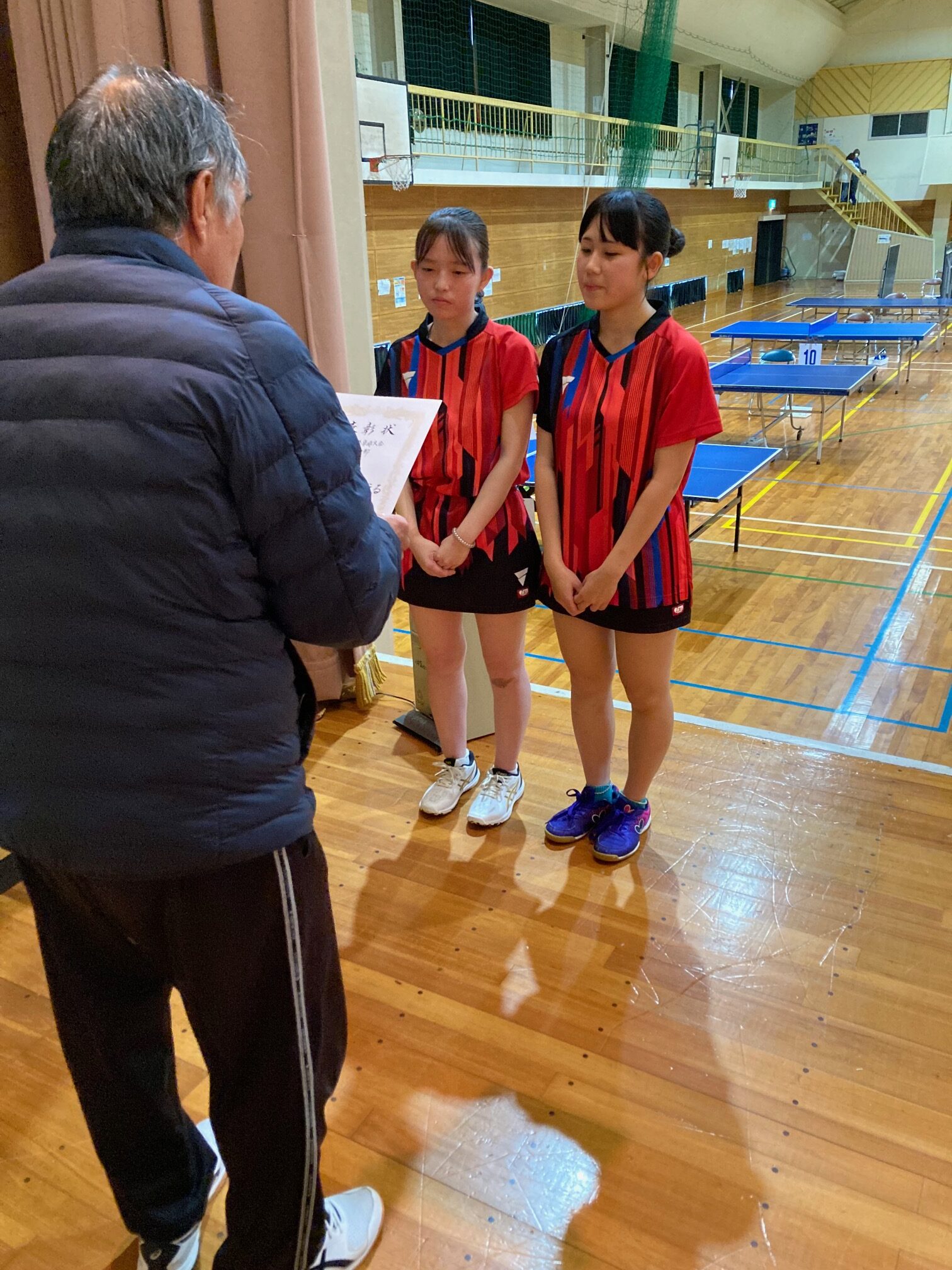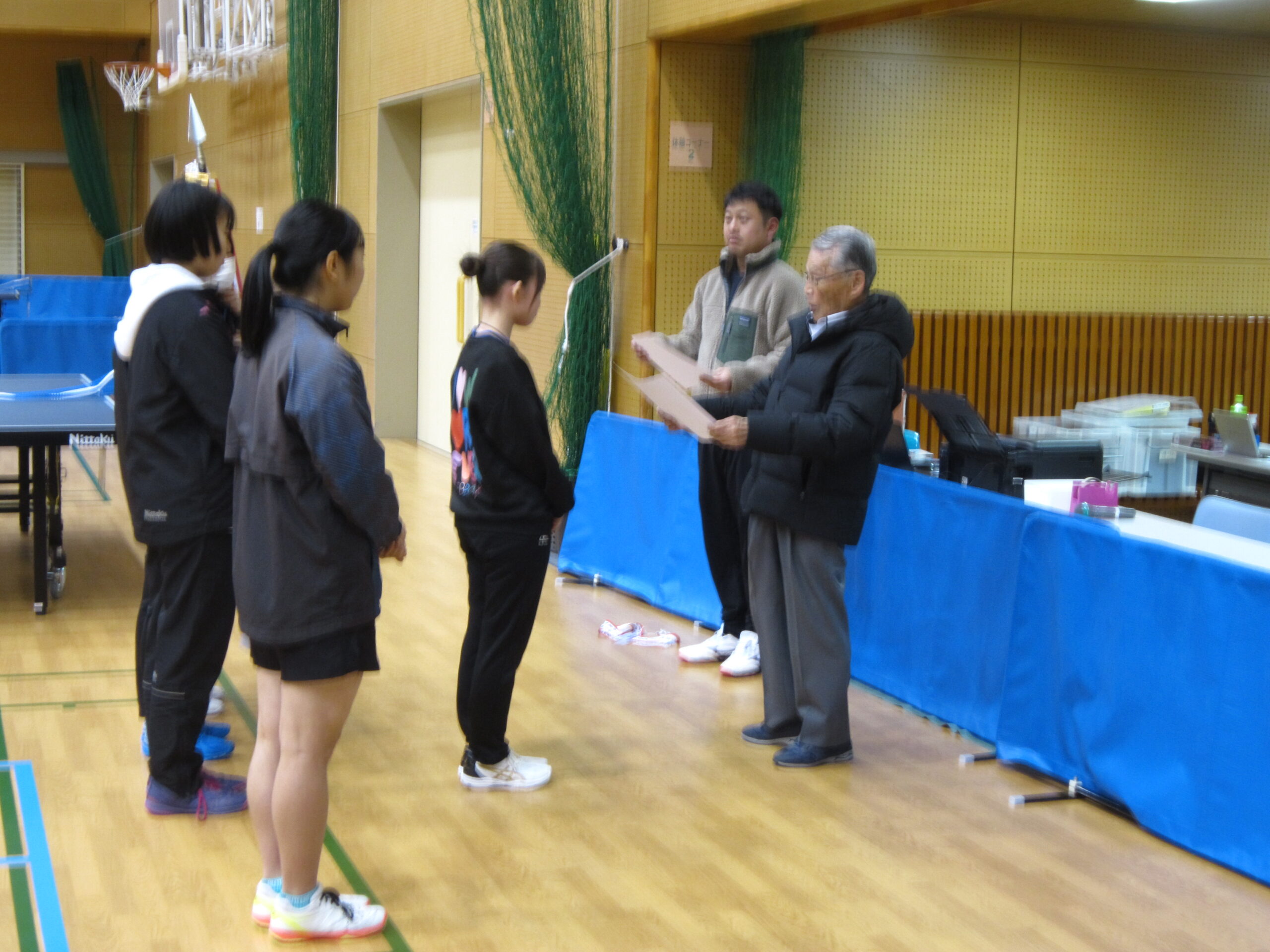シングルスにおいては、男子卓球部では昨年11月に開催された日向市総合文化祭卓球大会において米良海晴選手が第3位入賞、女子卓球部では昨年12月に開催された延岡市卓球協会長杯卓球大会において中嶽かんな選手が第3位入賞、選抜大会において西村陽茉里選手が第3位に入賞しています。